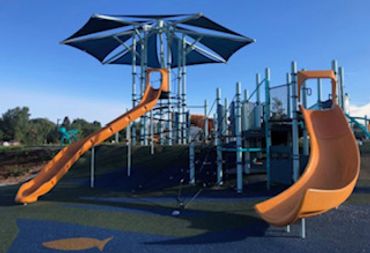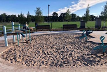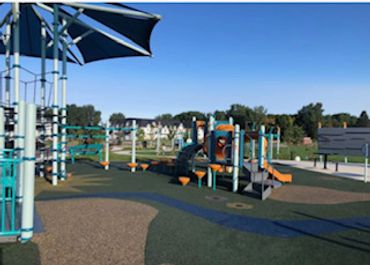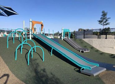 This park features smooth surfaces, wheelchair accessibility throughout the entire park (including the main structure), quiet areas (for kids with sensory needs), a variety of materials (including sand area) for sensory exploration, musical instruments, adaptive zipline, a variety of swings, and obstacle course equipment aimed at ages 13 and older.
